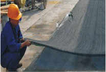抬鋪法: 把已剪好的卷材反鋪于基面上(即是底部隔離紙朝上),待剝去卷材全部隔離紙后,再將水泥素漿刮涂在卷材粘結面和基面待鋪位置,然后分別由兩人從卷材的兩端配合抬起,翻轉和鋪貼在待鋪位置上。卷材與相鄰卷材之間為平行搭接,待長、短邊搭接施工時再揭除上下卷材搭接隔離膜。